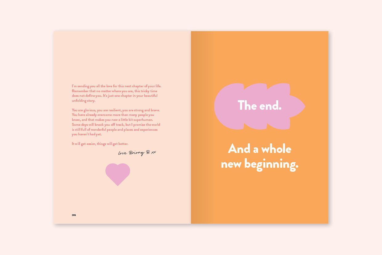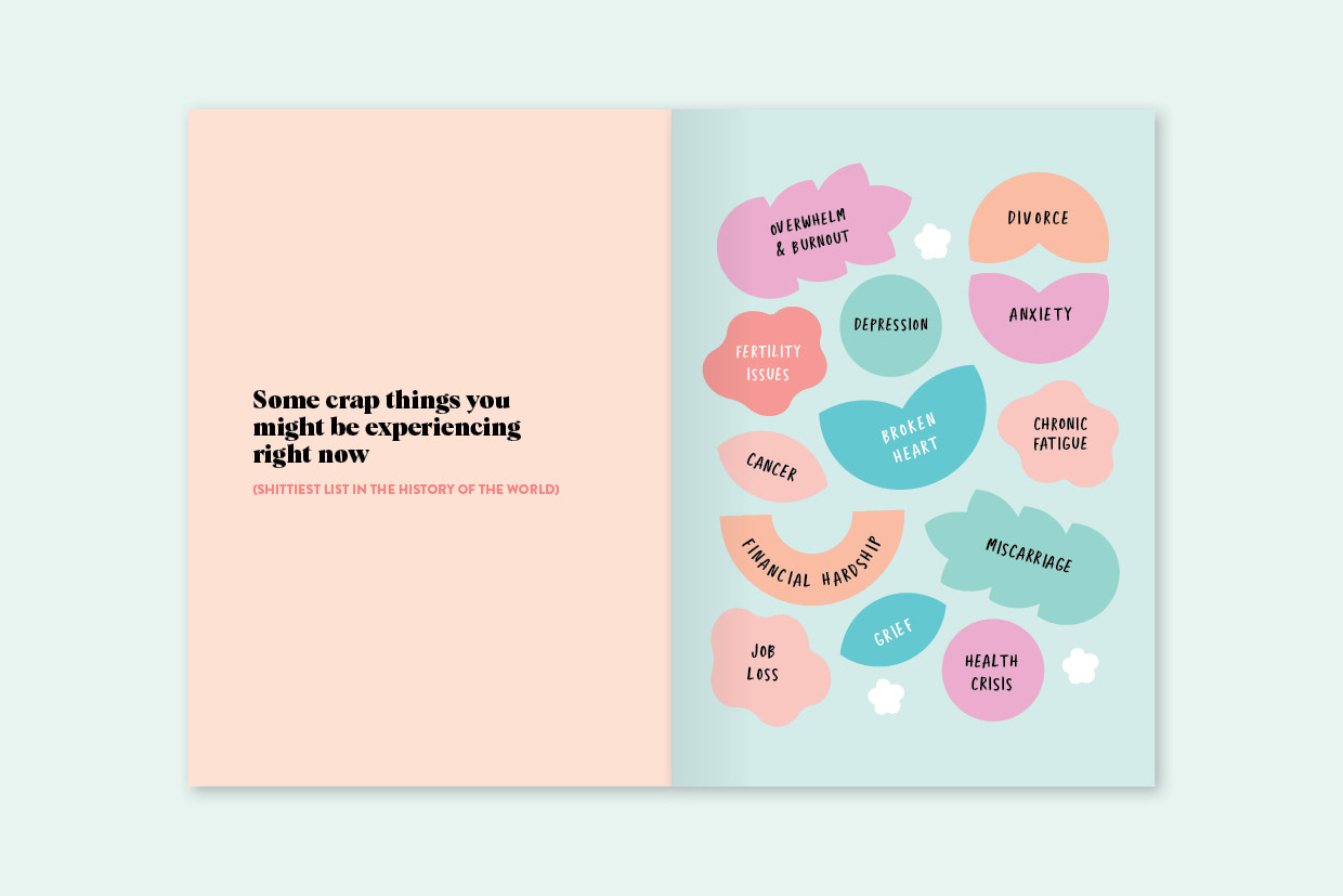 This guided journal by Briony Benjamin is inspired by the book Life is tough (but so are you). It has writing prompts and exercises to step you through a tricky time. The brief for me was to follow the colourful and fresh design of Briony's first book and make the design of this journal similar but not the same, using some of the same colours and elements and come up with some new design elements as well.